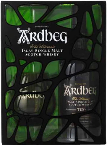 Der Ardbeg 10 yrs. in Geschenkpackung mit Tumbler ist eine Sonderedition des wohl berühmtesten Whiskys der bekannten Whisky-Insel Islay, die zu den Inneren Hebriden gehört. Gegründet 1815 durch Alexander Stewart an der Südküste von Islay, ist sie die östlichste der drei renommierten Destillerien Laphroaig, Lagavulin und eben Ardbeg, die für ihre schweren, stark getorften und rauchigen Single Malt Whiskys berühmt sind. Und die Whiskys von Ardbeg gelten als die extremsten dieser drei Brennereien: sie sind generell schwer getorft und rauchig, mit einem extrem medizinischen Einschlag, an den sich Anfänger vielleicht erst gewöhnen müssen – Liebhaber aber ziehen ihn allen anderen vor! Ardbeg gehört heute zum französischen Luxuskonzern LVMH, der die Brennerei nach zwischenzeitlichen Schließungen komplett renovierte und ihr wieder zu altem (und neuem!) Ruhm verhalf.