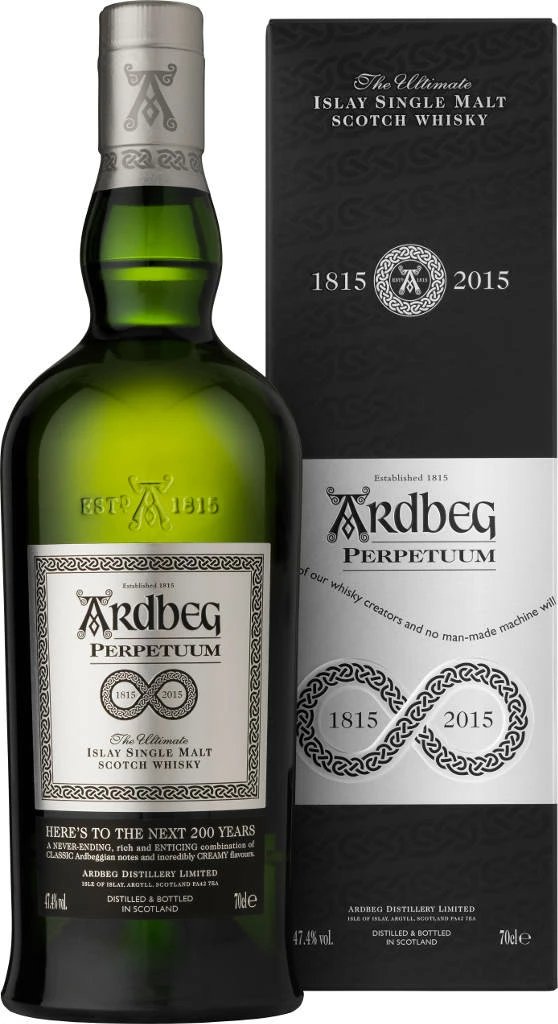 Ardbeg Perpetuum ist da! Die Special Edition der Ardbeg-Familie wurde pünktlich zum 200-jährigen Jubiläum der beliebten Islay Brennerei herausgebracht und begeistert bereits mit einem noblen Äußeren. Perpetuum bedeutet auf Latein so viel wie „für immer“ und auch das Unendlichkeitszeichen auf dem Etikett verweist darauf, dass Ardbeg eine Whisky-Traditionsmarke ist, die keine Modeerscheinung ist, sondern für die Ewigkeit angedacht ist. Und in der Tat ist Ardbeg ja bereits seit 1815 auf der berühmten Islay-Insel als einer der großen Torfriesen vertreten.
