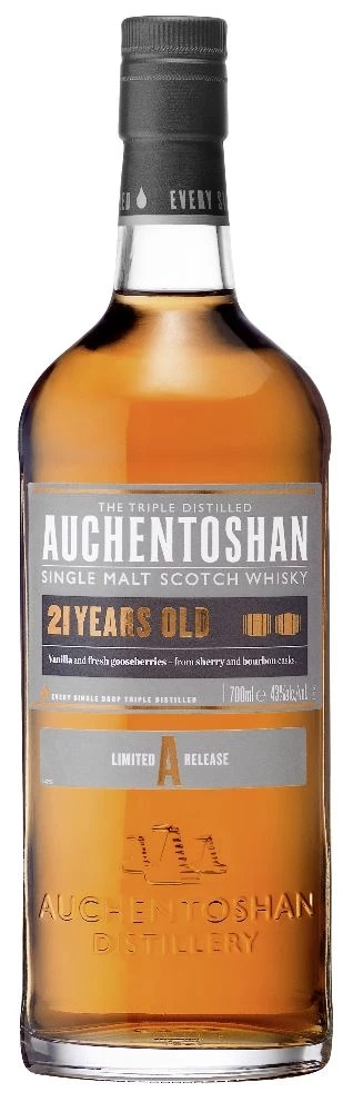 Bei dem Auchentoshan Whisky verbinden sich fruchtige Stachelbeernoten mit einem süßen Anklang von cremiger Vanille. Ein Hauch von Eiche und der feine Geschmack nach Honig runden den Charakter der edlen Spirituose ab. Der Abgang des Auchentoshan 21 yrs. Ist lang anhaltend und harmonisch.