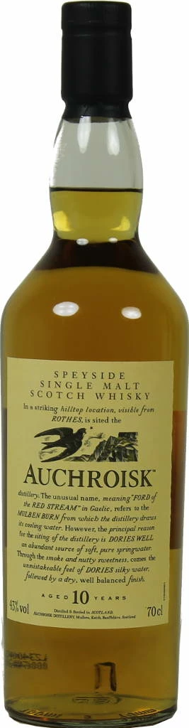 Auchroisk ist eine der jüngeren Destillerien der schottischen Whisky Region Speyside. Je nach Gesprächspartner müssen Sie Auchroisk „Ach Rask“ oder „Auch Roysk“ sprechen. Die Region Speyside stellt landesweit die meisten Destillerien, jede mit ihrem eigenen Charakter. Auchroisk produziert seit 1974 verschiedene Single Malts. Kenner bevorzugen Auchroisk 10 years pur oder mit Wasser verdünnt. Eine Verwendung von Eiswürfeln oder gar nicht alkoholischen Getränken zum Mischen dieses exklusiven Single Malt Whiskys stellt nicht nur innerhalb der Landesgrenzen Schottlands eine regelrechte Sünde dar.