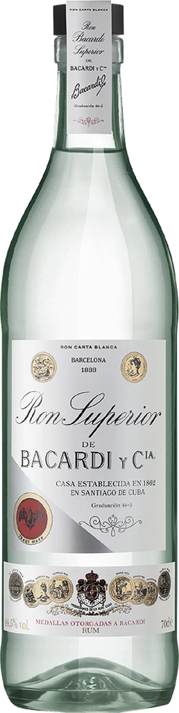 Rum von Bacardi in 0,7l Flasche mit 44,5 %Vol. Alc. mit Farbstoff