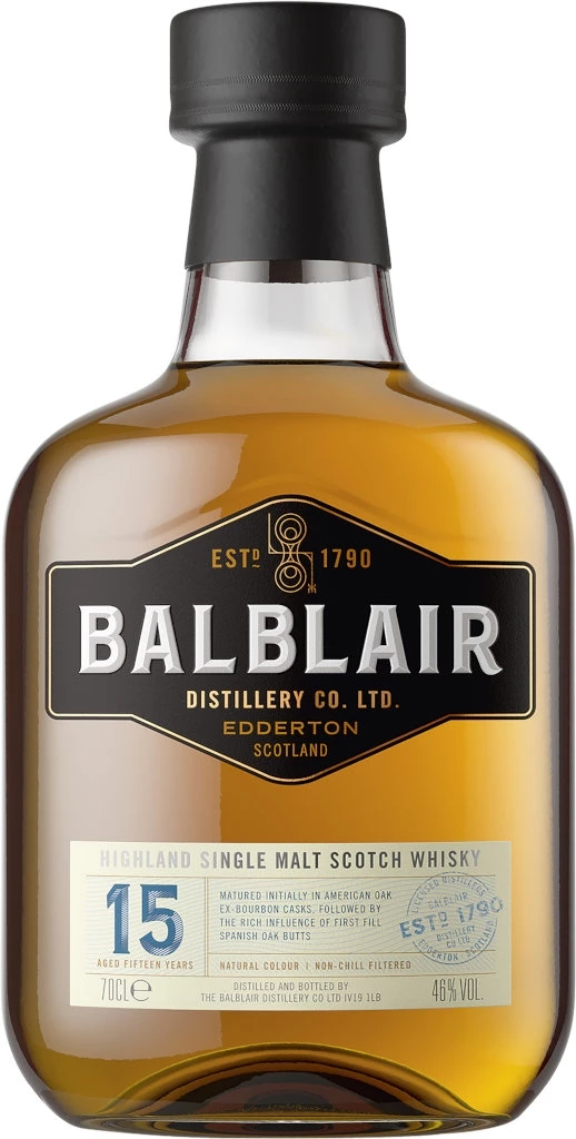Balblair Whiskey 15 Jahre Single Malt in der 0,7l Flasche mit 46% Vol.Alc. mit Farbstoff