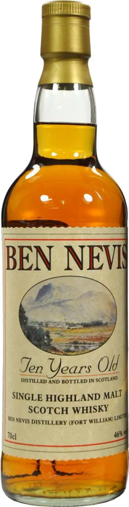 Ben Nevis Whisky besitzt eine attraktive, helle Bernsteinfarbe, die in der ausgesprochen formschönen 0,7 Liter Flasche mit bauchigem Hals perfekt zur Geltung kommt. Das stilvolle Etikett zeigt ein Gemälde der Destillerie, hinter der sich der beeindruckende Ben Nevis erhebt. Der Alkoholgehalt dieses bekannten, schottischen Whiskys liegt bei stolzen 46 Prozent. Kenner trinken den hochprozentigen Scotch Whisky am liebsten mit nur ein wenig, möglichst mineralarmen Wasser verdünnt bei knapp Zimmertemperatur. An warmen Tagen schmeckt er auch on the rocks hervorragend. Ben Nevis Whisky eignet sich darüber hinaus ausgezeichnet als Basis für verschiedene anspruchsvolle Cocktails und Longdrinks. So lassen sich mit ihm beispielsweise wohlschmeckende Long Island Ice Teas oder ein spritziger Caledonian Mist mixen.