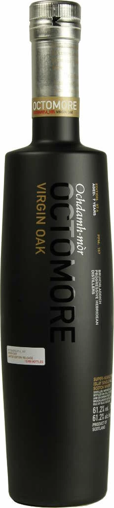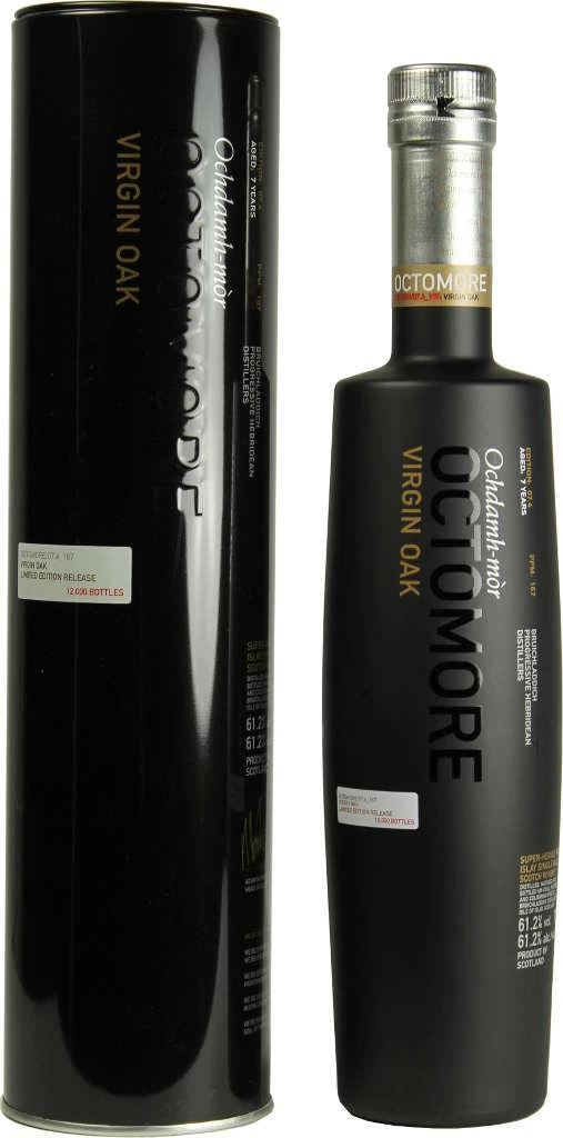 Zuallererst heißt es hier: schnell sein! Denn Octomore 7.4 ist auf lediglich 12.000 Flaschen streng limitiert, sodass es dem einen oder anderen wahrscheinlich schwer fallen wird, eine Flasche zu ergattern. Anders als seine Vorgänger, verbrachte der neueste Octomore Whisky sieben Jahre in Amerikanischen Eichenfässern. Dies heißt erstens, dass der Virgin Oak Octomore mit „lediglich“ 167ppm aufzuwarten vermag, denn je länger die Reifung andauert, desto mehr verflüchtigen sich die Torfaromen. Hier sollte man jedoch nicht dem Irrtum auferliegen, dass Octomore weniger rauchig ist (sein Vorgänger hat im Vergleich nur 2ppm mehr). Wie stets bleibt er seiner Linie als der am meisten getorfte Malt der Welt treu. Und zweitens versuchte man sich hier an einer interessanten Fassreifung in Virgin Casks aus amerikanischer Eiche, die das intensive Vanillearoma in vollendeter Harmonie mit den rauchigen Torfnuancen zu vereinen wissen.