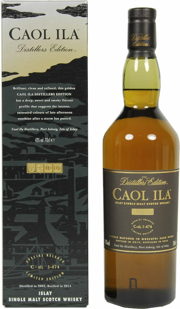 Dieses neueste Kunstwerk der Brennerei gehört zur exquisiten und bekannten Reihe der Classic Malts of Scotland, die vom Spirituosenkonzern Diageo herausgegeben wird und als traditionelle Vertreter der einzelnen schottischen Whisky-Regionen auftreten. Neben den klassischen Abfüllungen gibt es spezielle Distillers Editions, die sich durch ein sogenanntes Finishing abheben. Dies bedeutet, dass nach der üblichen Fassreifung eine Nachlagerung in speziellen Fässern stattfindet, die den besonderen aromatischen Charakter des jeweiligen Whiskys hervorhebt. Im Falle der Caol Ila Destillerie meint dies eine Reifung in ehemaligen Bourbon-Fässern sowie ein Finishing in Moscatel Fässern.