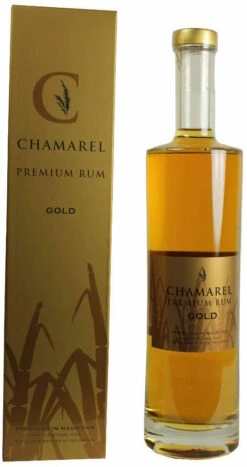 Der Chamarel Gold Rum stammt aus Mauritus und ist aus feinstem, vor Ort gereiftem Zuckerrohrsaft gebrannt. Er besitzt einen hell leuchtenden goldgelben Ton. Sein süßer Geschmack gibt Noten von Vanille und einen Hauch von Gewürzen wie Zimt wieder. Empfohlen wird der Chamarel Rum als After Dinner Drink oder mit kohlensäurehaltigem Wasser gemischt.