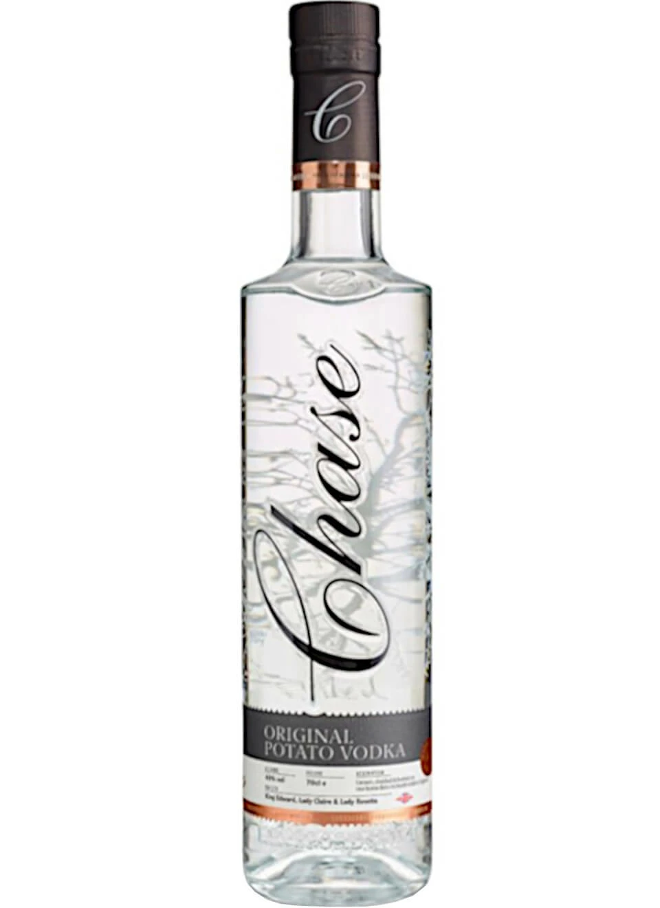 Chase Potato Vodka ist ein hochfeiner englischer Vodka aus der berühmten Chase Distillery in Hereford, etwa 80 km südwestlich von Birmingham in der britischen Grafschaft Herefordshire gelegen. Diese von Obstbau und Landwirtschaft geprägte Gegend ist die Heimat der Rosemaund Farm, wo in unmittelbarer Nachbarschaft zur Brennerei die Kartoffeln wachsen, die den Grundstoff für den Chase Wodka liefern. Die Abfüllung erfolgt mit 40% Alkoholgehalt in elegante, eigens für die Destillerie entworfene, nummerierte Flaschen, die durch ein minimalistisches Design und den eleganten Chase-Aufdruck einen hohen Wiedererkennungswert besitzen.