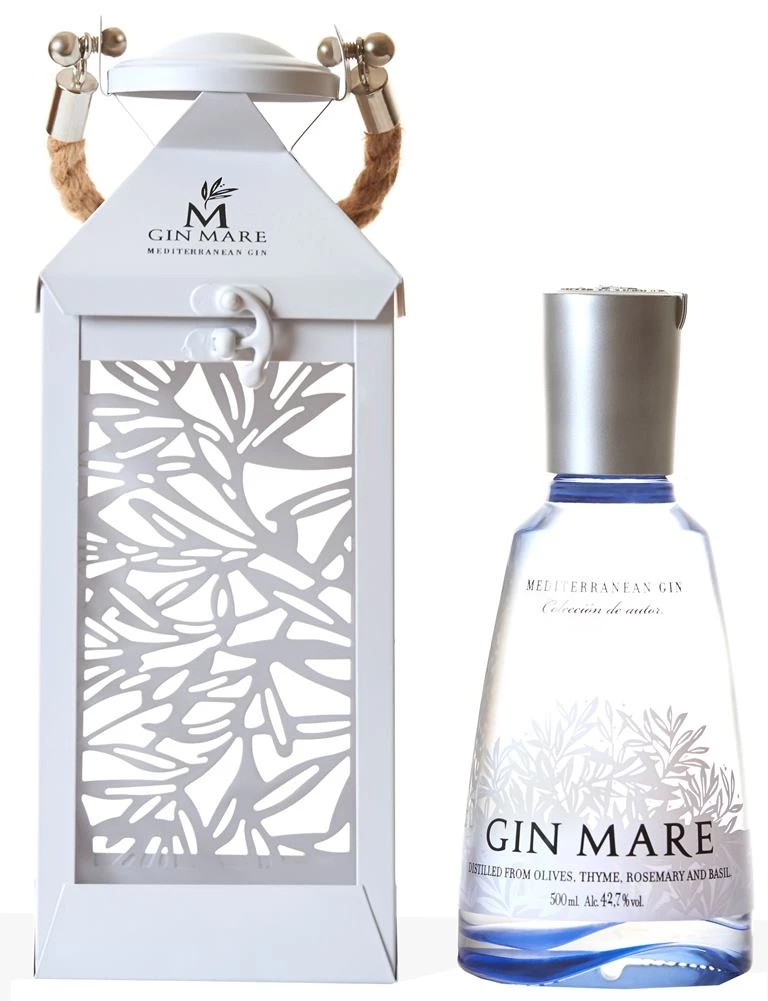 Gin von Mare in 0,7 Liter Flasche mit 42,7 %Vol. Alc. und Laterne