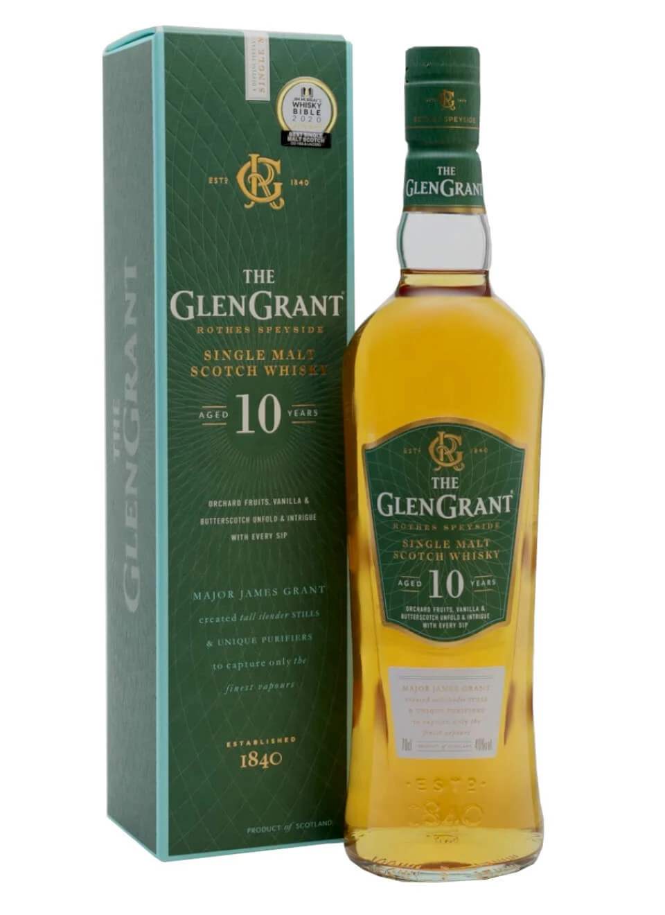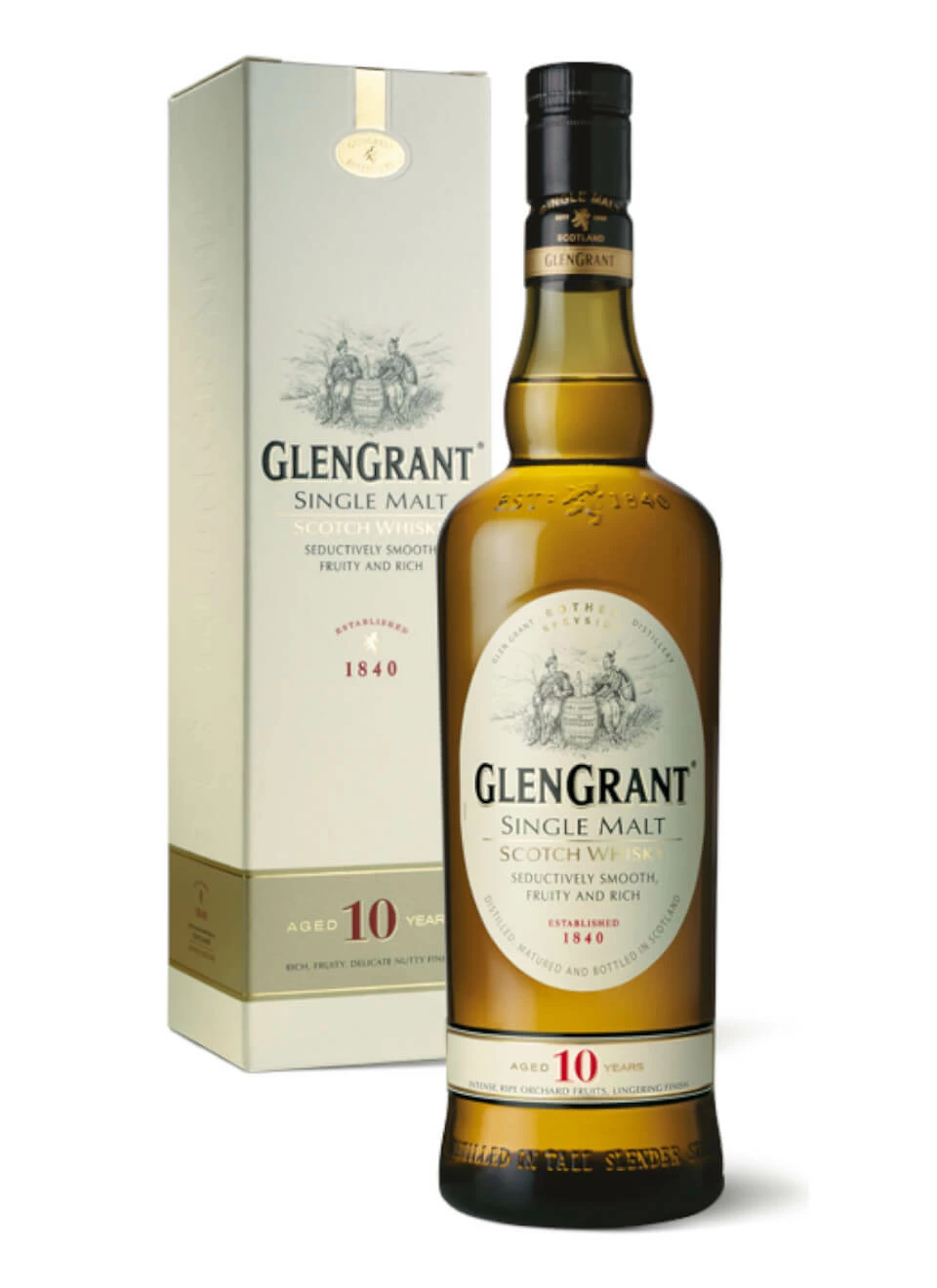 Glen Grant 10 Jahre ist der Single Malt Scotch Whisky, der von der traditionsreichen Marke Glen Grant aus Schottland hergestellt wird. Das Unternehmen wurde im Jahre 1840 von den beiden Brüdern John und James Grant gegründet und kann somit auf eine lange und traditionsreiche Geschichte zurückblicken, bei der die Verwendung von hochwertigen Zutaten zur Herstellung der Malts von Anfang an ein wichtiger Faktor für den Erfolg der Whiskybrennerei waren. So wurde zum Beispiel von Beginn an die Gerste zur Herstellung des Whiskys genutzt, die am schottischen Fluss Spey wächst, nach dem auch die Region Speyside benannt ist.