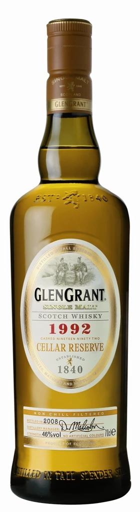 Der 1992 Cellar Reserve als Spitzenprodukt von Glen Grant hat 16 Jahre Fasslagerung in gebrauchten Bourbon- und Sherry-Fässern hinter sich und kommt als streng limitierte Abfüllung in 0.7 l Flaschen auf den Markt, auf deren Etikett der Master Distiller, Dennis Malcolm, durch seine Unterschrift dafür bürgt, dass nur die besten Fässer zur Produktion dieses Scotch herangezogen werden. Der Whisky wird nicht filtriert und hat einen Alkoholgehalt von 46%, auch auf eine Farbkorrektur wird verzichtet. Der Whisky zeigt im Glas eine hellgoldene Farbe, die typisch für Scotch Whiskys von Glen Grant ist. Im Aroma dominieren Rosinen und Oloroso-Sherry. Im Geschmack überzeugt er durch eine perfekte Balance und einen tiefen und fruchtigen Körper mit einem langen, sehr feinen Abgang. Er kann deshalb als Paradebeispiel eines Speyside Single Malt Whisky bezeichnet werden.