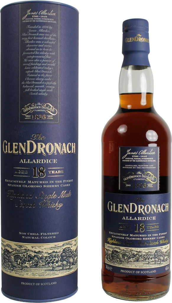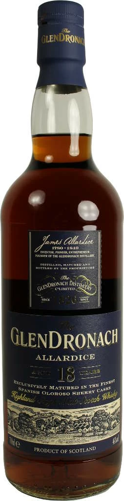 Whisky von Glendronach in der 0,7l Flasche mit 46 % Vol. Alc. mit Farbstoff