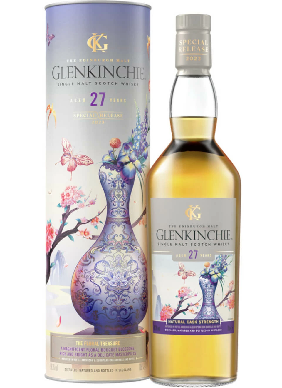 Glenkinchie 27, The Floral Treasure reifte als Refill in Fässern aus amerikanischer Eiche, sowie Butts aus europäischer Eiche. Im Geschmack zeigt er sich intensiv und frisch wie ein Meisterwerk. Ein Bouquet an üppigen floralen Aromen.