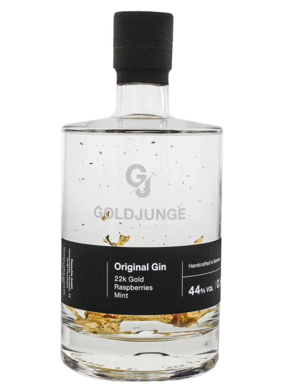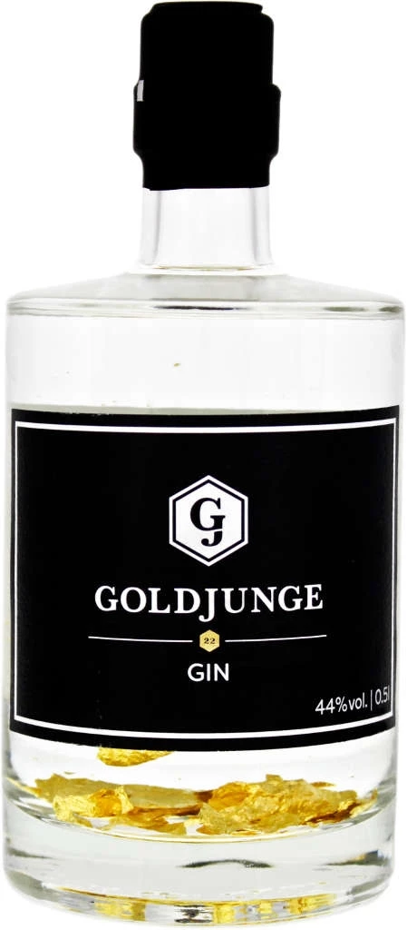 Gin von Goldjunge in der 0,5l Flasche mit 44% Vol. Alc. mit Farbstoff