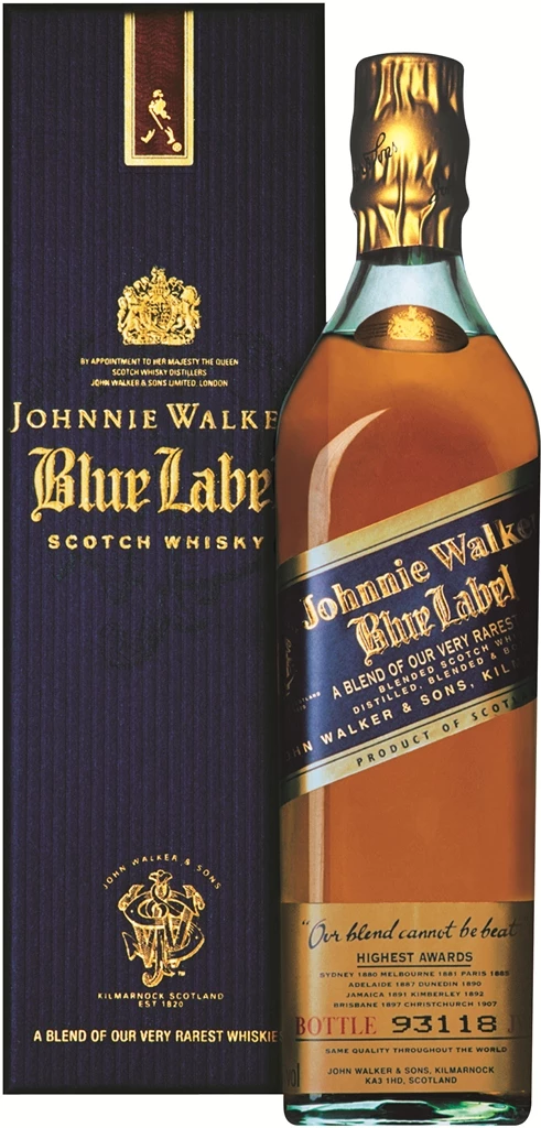 Der Johnnie Walker Blue Label wird seit 1992 aufgelegt, es handelt sich dabei um einen Blend aus wohl neun verschiedenen Grundwhiskys der Extraklasse, die von dem berühmten Royal Lochnagar angeführt werden. Im Stil erinnert der Johnnie Walker Blue Label an den 1867 Old Highland Whisky von Alexander Walker, der seinerzeit zu den besten Whiskys auf dem Markt gehörte. Der an Exklusivität kaum mehr zu überbietende Johnnie Walker Blue Label in der kleinen 0,2 Liter-Flasche ist die ideale Möglichkeit, diesen Blended Scotch Whisky überhaupt einmal kennen zu lernen!
