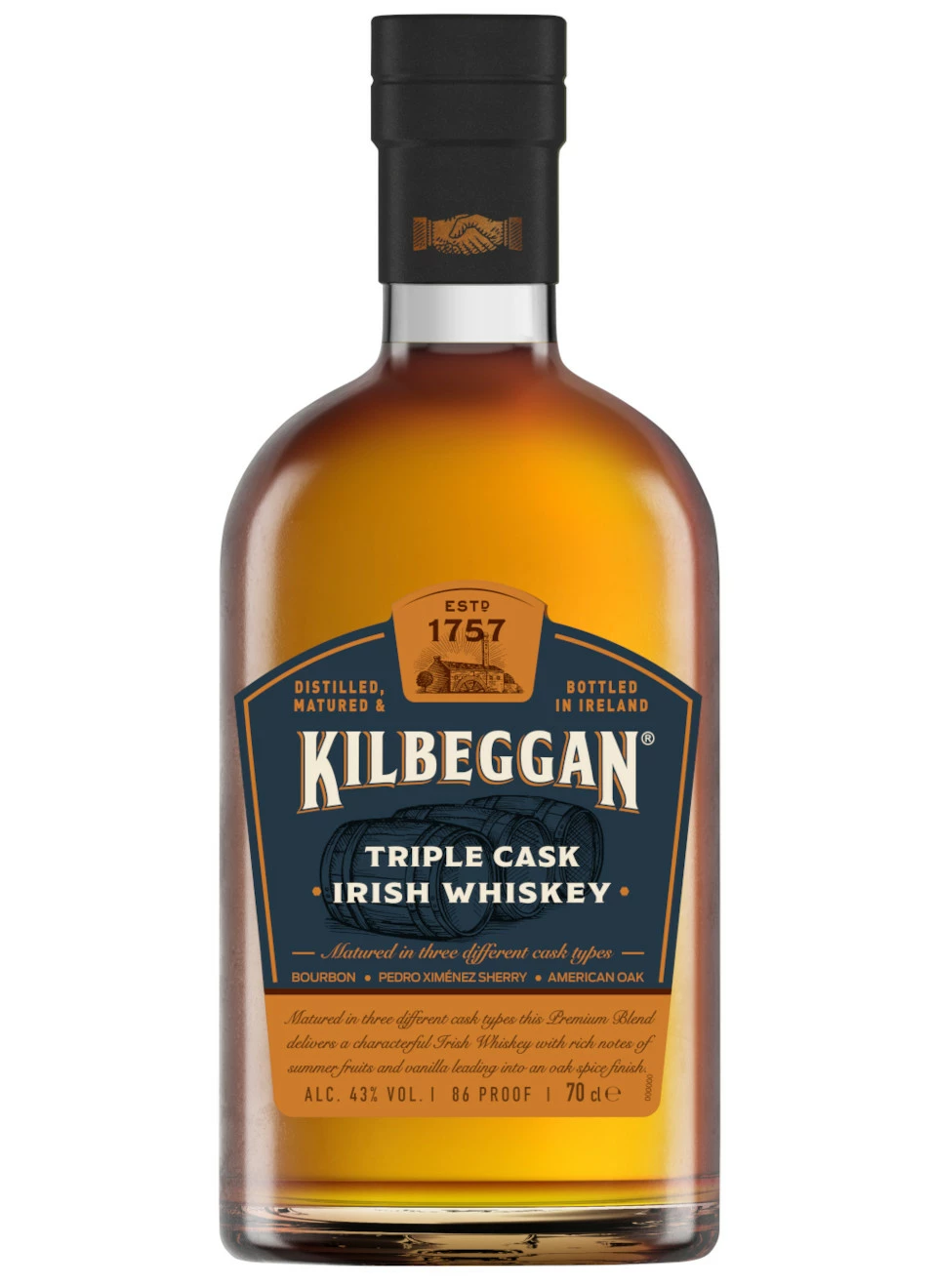 Whiskey von Kilbeggan in der 0,7l Flasche mit 43% Vol. Alc. mit Farbstoff