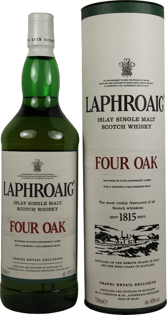 Whisky von Laphroaig in einer 1l Flasche mit 40% Vol. alc. mit Farbstoff