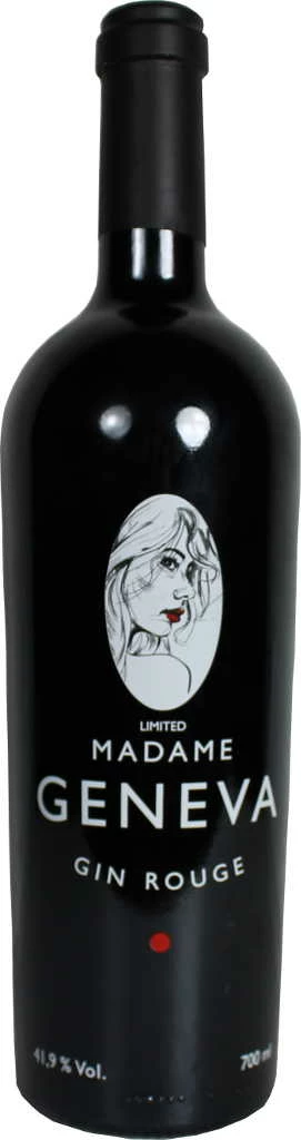 Gin von Madame Geneva in der 0,7l Flasche mit 41,9% Vol. Alc. und Farbstoff