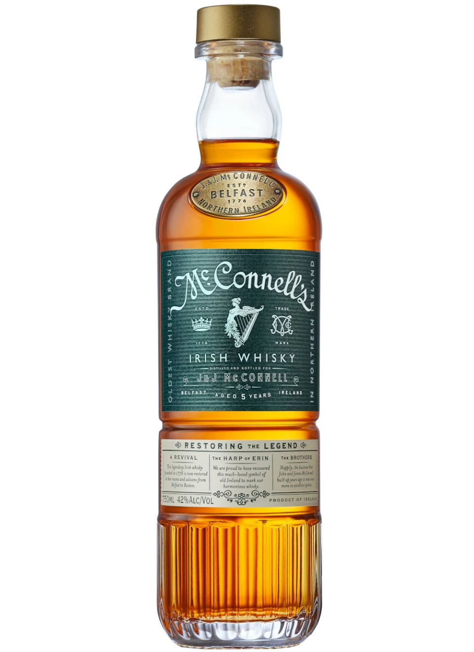 Aufgepasst: der älteste Whiskey Nordirlands feiert ein Comeback. Der McConnell’s Irish Whisky verführt in der Nase mit intensiven Noten und einer Balance aus angenehmer Süße und feiner Würze. Auf der Zunge überrascht er mit einer spannenden Komplexität aus cremigen, rauchigen und frischen Nuancen. Am Gaumen lassen sich Anklänge von grünen Äpfeln, Pfeffer, Vanille, Butterkuchen, Blumen und Zitrusfrüchten wahrnehmen. Der Geschmack wird untermalt von würzigem Eichenholz. Fünf Jahre reift der McConnell’s Irish Whisky in handverlesenen, ehemaligen Bourbon Fässern. Ein toller irischer Whiskey, den wir nach 90 Jahren endlich wieder genießen dürfen. Gegründet wurde die McConnell’s Brennerei von den Brüdern John und James im Jahr 1776. Die McConnells’s Whiskys feierten schnell einen bahnbrechenden, internationalen Erfolg. Doch im Jahr 1909 vernichtete ein großes Feuer fast 2 Millionen Liter Whiskey. Die darauffolgende Prohibition in Amerika bedeutete das Aus für die familiengeführte Brennerei. Der Betreib wurde 1958 eingestellt. Aber heute, nicht weit von der ehemaligen Brennerei entfernt, wird endlich wieder McConnell’s Irish Whisky hergestellt. Wenn das nicht ein Grund zum anstoßen ist!