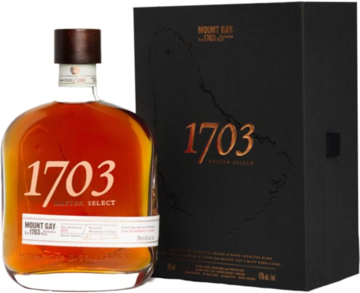 Mount Gay 1703 Master Select in der 0,7l Flasche mit 43% Vol.Alc. mit Farbstoff