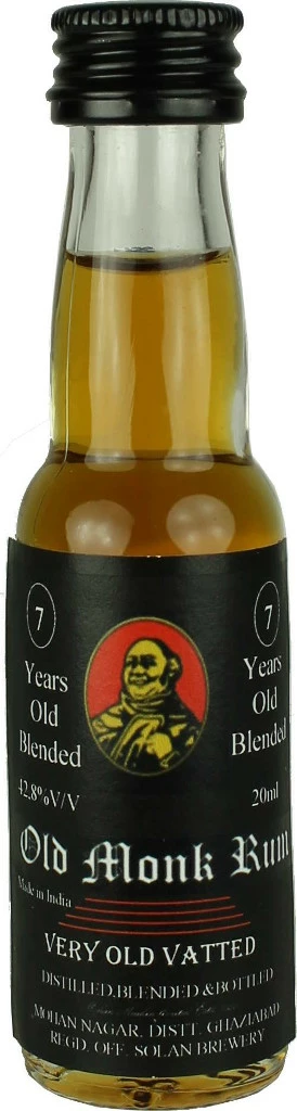 Rum von Old Monk in der 0,02l Flasche mit 42,8% Vol. Alc.