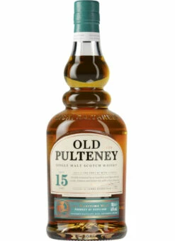 Old Pulteney 15 gilt als der sanfteste Malt der Old Pulteney Brennerei. So zeigt er sich in einem kräftigen Bernsteinton und insgesamt perfekt ausgewogen. Im Geschmack zeigt er Aromen von reifen Äpfeln, Zitrusfrüchten und getrockneten Früchten. Diese werden von der Süße, die an Honig und cremige Vanille erinnern, umspielt. Noten von intensiven Gewürzen, Lebkuchen, kräftiger Schokolade und süßem, dunklem Toffee gesellen sich hinzu. Nach und nach zeigen sich erfrischend maritime Aromen und runden ihn ab. Er endet mit einem sehr langanhaltendem Finish.