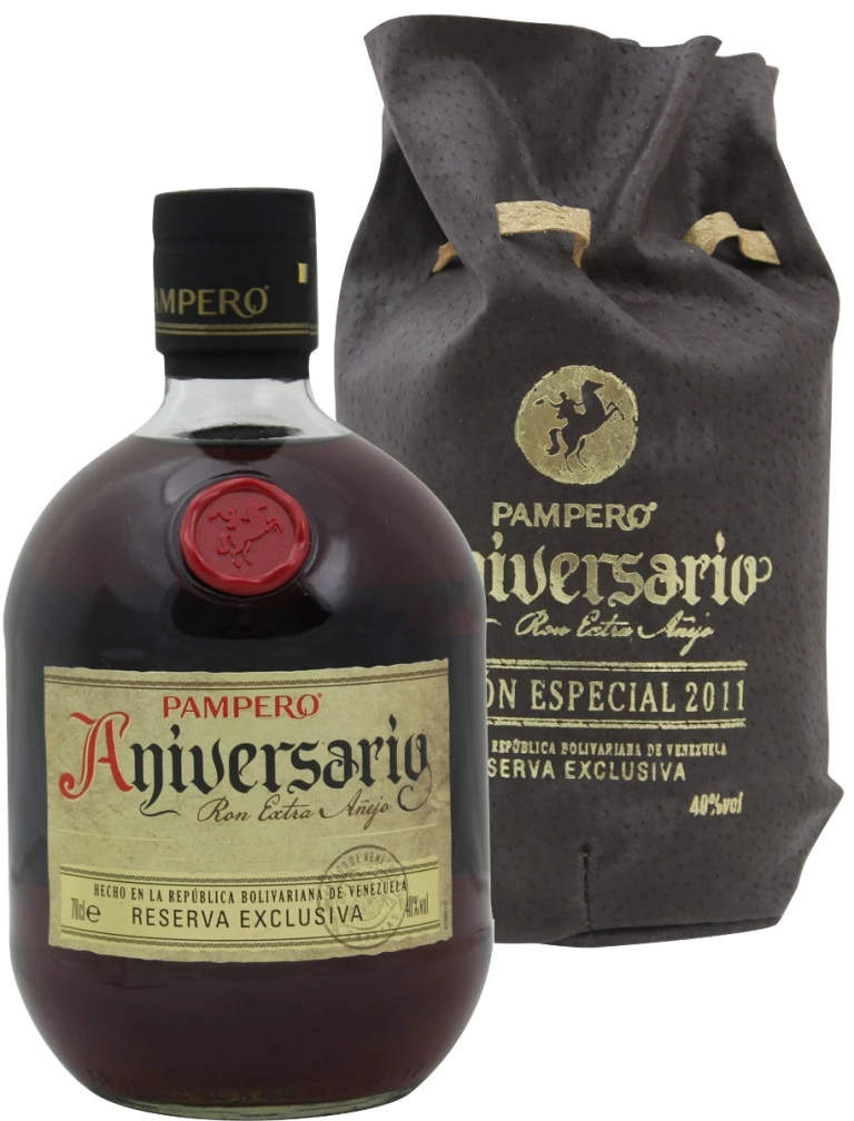 Pampero Aniversario Limited Edition 2011 ist eine Sonderedition der berühmten, 1938 von Alejandro Hernández in Venezuela gegründeten Industrias Pampero, C.A. Ursprünglich in Ocumare del Tuy, etwa 50 km südlich der Hauptstadt Caracas ansässig, hat dieser bekannteste Rum-Hersteller des Landes heute seinen Sitz in Caracas selbst und gehört zum britischen Spirituosen-Multi Diageo. Die Pampero-Destillerie befindet sich auf der Hacienda La Guadalupe, wo reiche Böden und ein warmes Klima die idealen Bedingungen für den Zuckerrohr-Anbau bieten. Der Name leitet sich von dem Wind ab, der aus der Pampa Argentiniens her weht. Zusammen mit Ron Diplomatico (in Deutschland Ron Botucal) ist Pampero der Grund dafür, dass Venezuela als eines der wichtigsten Rum produzierenden Länder der Welt gilt, die wirtschaftliche Bedeutung der Rum-Produktion für das Land ist enorm.