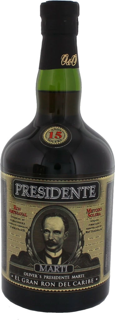 Die Herkunft des Presidente ist Santo Domingo in der Dominikanischen Republik. Dort befindet sich der Sitz von Oliver & Oliver, die sich seit 1997 auf Blended Rum spezialisiert hat . Die Familie Oliver ist nachweislich seit dem 14. Jahrhundert in Santo Domingo ansässig und seit Beginn der Erzeugung von Rum in der Dominikanischen Republik in die Vorgänge rund um die Rumproduktion involviert. Der Familie war es immer ein Anliegen, die Tradition des kubanischen Rums hochzuhalten. Mit der Spezialisierung auf blended Rum erwarb sich Oliver & Oliver einen internationalen Ruf im Bereich der Produktion von Premium Rum .Herstellung, Reifung und Abfüllung der Premium Rums wie der Presidente Marti 15 Jahre werden vom Masterblender Don Pedro Oliver persönlich überwacht und jede Flasche zertifiziert. Die edelsten und limitierten Sorten werden auf dem Etikett mit der persönlichen Unterschrift von Pedro Oliver versehen. Neben kubanischem Rum werden von Oliver & Oliver Rumsorten aus an Ländern wie Panama und Trinidad geblendet .