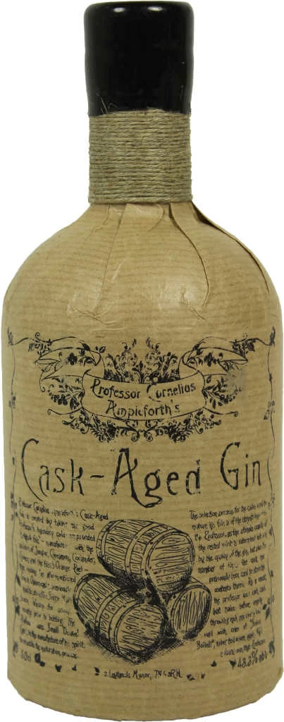 Professor Cornelius Ampleforth’s Gin Cask-Aged ist ein auf einer klassischen Rezeptur aus dem 19. Jahrhundert beruhender hochwertiger Gin des unabhängigen Spirituosenanbieters Master of Malt aus dem im Südosten England liegenden Royal Tunbridge Wells. Es handelt sich um den klassischen Bathtub Gin dieses Herstellers, der zusätzlich eine drei- bis sechsmonatige Fassreifung durchlaufen hat. Professor Cornelius Ampelforth’s Cask-Aged Gin wird aus hochwertigen Zutaten im Cold-Compounding-Verfahren erzeugt. Die Essenzen der pflanzlichen Ingredienzien werden daher durch Destillation oder durch Auspressen der Botanicals vorab gewonnen und dann dem Wasser zugegeben, bevor dieses dem reinen Alkohol vor dem eigentlichen Destillationsvorgang zugeführt wird. Professor Cornelius Ampleforth’s Cask-Aged Gin wird in hochwertigen Kupferkesseln destilliert und dann in kleinen Fässern zur Reifung gelagert. Diese kleinen Fässer besitzen nur ein Fünftel der Füllmenge der klassischen englischen Hogsheads. Dies ermöglicht eine optimale Ausbildung des Aromas, das als würzig, reich und geschmeidig zu bezeichnen ist. Es dominieren Aromen von Wacholder, Orangenschalen, Koriander und Kardamom. Dieser fassgereifte Gin ist in Flaschen zu 0,5 Litern mit einem Alkoholgehalt von 43,3 Volumenprozent im Handel und wird in, mit braunem Packpapier umhüllten, Flaschen mit Wachssiegel angeboten, die an viktorianische Apothekengefäße erinnern.