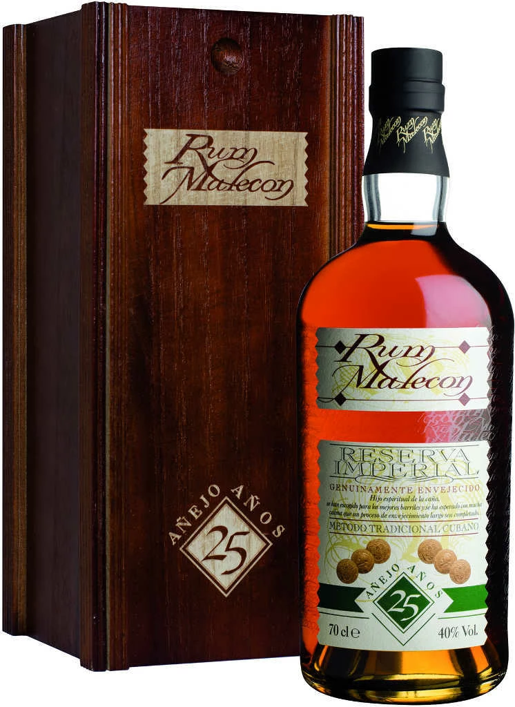 Rum von Malecon in der 0,7l Flasche in Holz-Geschenkbox mit 40% Vol. Alc. mit Farbstoff