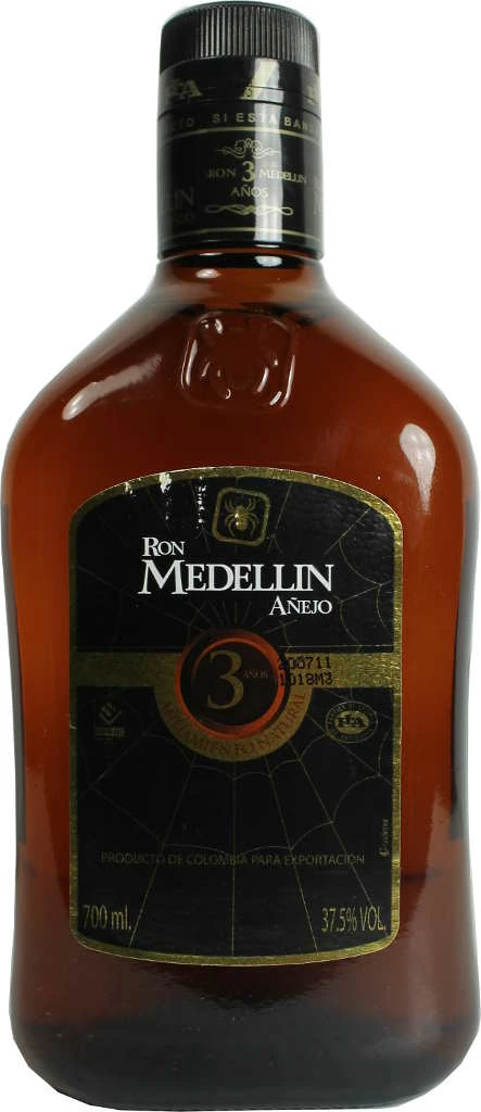 Rum von Ron Medellin in der 0,7l Flasche mit 37,5% Vol. Alc. mit Farbstoff