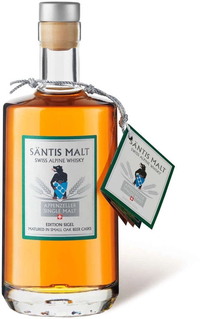 Whisky von Appenzeller Single Malt Säntis in der 0,5 Liter Flasche mit 43% Vol. Alc. und Farbstoff