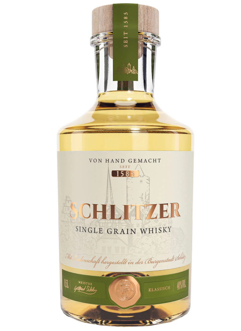 Single Grain Whisky von Schlitzer in der 0,5l Flasche mit 40% Vol.Alc. mit Farbstoff