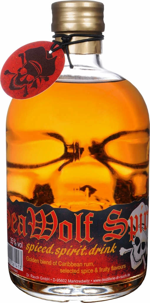 Spirituose von SeaWolf in der 0,5 l Flasche mit 35% Vol. Alc. mit Farbstoff