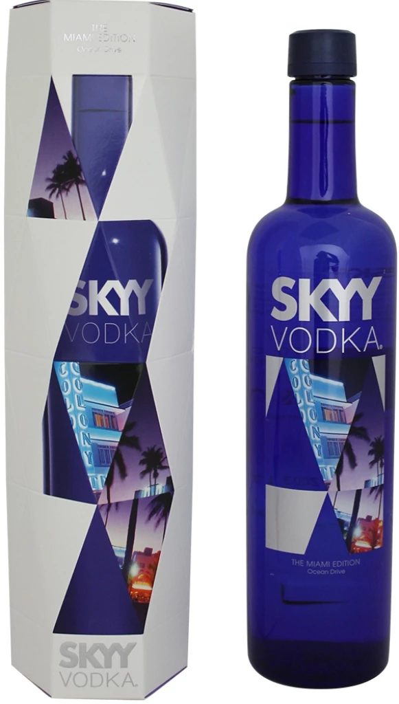 Die Skyy Collector’s City Edition „Miami“ bildet die drite Ausgabe der Skyy Collector’s City Edition“, die von der 1992 in San Francisco etablierten Skyy-Destillerie kreiert wurde. Dass diese inzwischen zur italienischen Gruppo Campari gehört, hat das weltweite Marketing des Skyy Vodka sehr vereinfacht, weshalb dieser mittlerweile die am schnellsten wachsende Vodka-Marke der Welt ist. Dies liegt natürlich auch daran, dass der Skyy Vodka von herausragender Qualität und besonders für seine Samtigkeit und Weichheit bekannt ist. Ein ganz modernes Design und eine hippe Aufmachung sorgen zusammen mit einem modernen Marketing und der Ausrichtung auf ein junges und kaufkräftiges Publikum dafür, dass Skyy Vodka heute in keiner modernen Bar der Welt mehr fehlen darf.