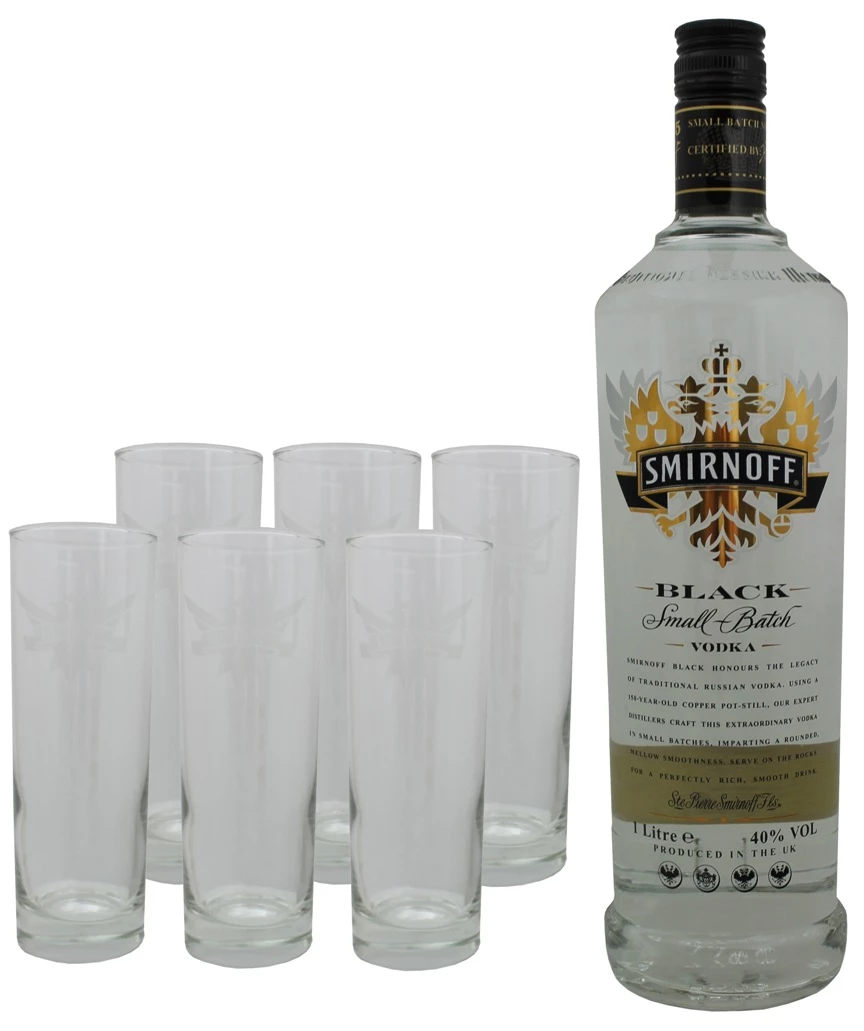 Smirnoff Black Label mit 6 Highballgläsern