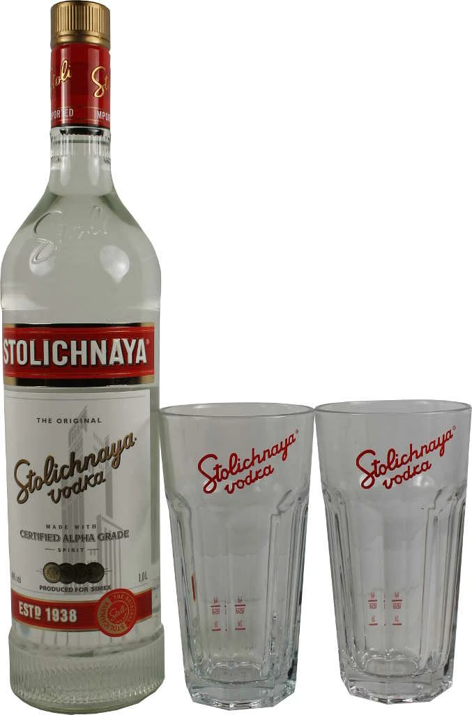 Wodka von Stolichnaya in 1l Flasche mit 40 %Vol. Alc.