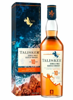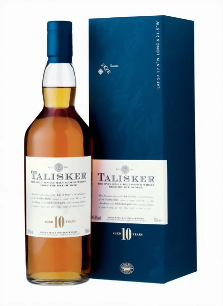 Mit 45,8% vol und 10 jähriger Reifung ist er der einzige Single Malt von der Isle of Skye. Dem vollmalzigen, kompletten und süßen Geschmack, der rasch zur Geltung kommt, geht ein angenehm-rauchiger Duft voran. Sein besonderes Merkmal ist die erst süße dann pfefferige Nuance am Gaumen. Begeisternd wie ein Sonnenuntergang auf Skye ist der nachhaltig warme Abgang. Am besten behutsam zu genießen. Gelegen auf der Nebelinsel Skye, am Ufer des Loch Harport in direkter Nähe zu den Cuillin Bergen, ist Talisker die einzige Brennerei auf Skye. Die Küstenlinie dieser Insel ist derart verwoben, dass kein Punkt auf ihr weiter als 10km vom Meer entfernt ist. In den Destilleriegärten wachsen typische Pflanzen und Bäume, wie z.B. Eberesche, Weiss-und Rotdorn. Dass nach wie vor viele Greifvögel auf dem „Falkenhügel“ hinter der Brennerei nisten, bestärkt den Namen Cnoc nan Speireagg.