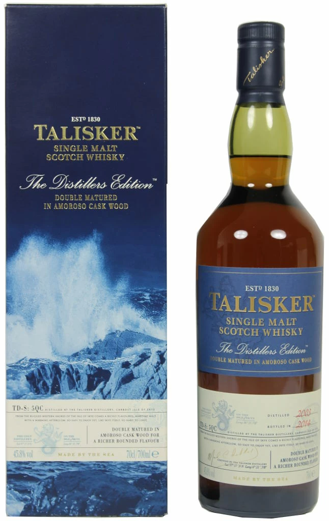 Wie alle Distillers Editions ist auch Talisker ein fassgereifter Single Malt Whisky, der im Jahr 2003 destilliert wurde und bis ins Jahr 2014 in aromatischen Fässern lagerte. Das Besondere: Destillate der Distillers Edition zeichnen sich durch das Finishing aus, eine Nachreifung in sorgfältig ausgewählten Fässern, die den besonderen Charakter und die spezielle Eigenart des Whiskys noch unterstreichen.