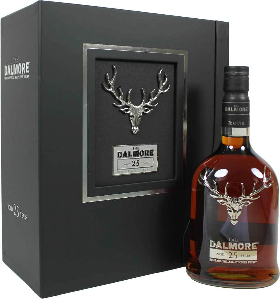 Der Dalmore Whisky 25 Jahre bekommt bereits durch den speziellen Brennvorgang in zwei verschiedenen Stills ein ganz individuelles Aroma. Die verwendeten Hefen verleihen dem 25 Jahre alten Whisky zusätzliche Fruchtigkeit. Durch die Lagerung in amerikanischen Weißeichefässern und die Reifung in alten Palomino Fino Sherry Fässern, die mehrfach verwendet werden, lässt sich im Geschmack eine Note von Sherry und Lakritze wahrnehmen. Nach diesem Reifungsprozess werden die Whiskys in Bourbonfässern vermählt, und lagern zur Nachreifung in Tawny Port Pipes. Das Aroma dieses 25 Jahre gelagerten Whiskys erinnert an exotische Früchte, Vanille und Feigen. Auch Noten von Marzipan, Kaffee und süßem Balsamico können wahrgenommen werden. Der Whisky schmeckt zudem intensiv nach Orangenschale, Pralinen, Pflaumen und Rosinen. Der Abgang des pur genossenen, 25 Jahre alten Dalmore besticht durch Rohrzucker-, Ahornsirup-, Bitterschokolade- und Lebkuchenaromen.