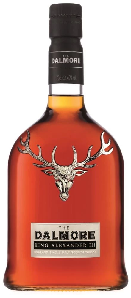 Ein Vorfahr der MacKenzies hatte 1263 den schottischen König Alexander III. während einer Jagd vor einem wilden Hirsch gerettet, weshalb der Familie der Zwölfender im Familienwappen gewährt wurde. – Mit diesem außergewöhnlichen Whisky erinnert man nunmehr an dieses Ereignis und treibt gleichzeitig das seit Jahren in vielen schottischen Whisky-Brennereien beliebte „wood management“ auf die Spitze: Werden die meisten Single Malt Scotch Whiskys heute nach der langjährigen Reifung in Ex-Bourbonfässern einem so genannten „Finishing“ in Fässern unterzogen, die zuvor zum Beispiel Sherry oder Port enthielten, so standen beim Dalmore King Alexander III. nicht weniger als sechs verschiedene Fässer zur Verfügung!