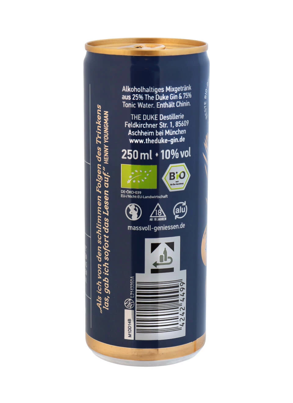 Gin & Tonic Bio von The Duke in der 0,25 Liter Dose mit 10% Vol.Alc., zzgl 0,25€ Pfand