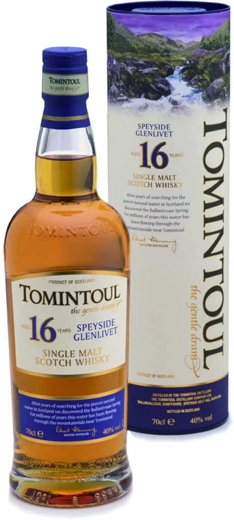 Tomintoul ist eine Whiskybrennerei bei Ballindalloch in Schottland, die im Jahr 1964 gegründet wurde. Sie liegt in der berühmten Region Speyside und ist nach dem nahegelegenen Tomintoul benannt, der höchstgelegenen Ortschaft der schottischen Highlands. Die hergestellten Single Malts zählen zu den eher leichteren, angenehm milden Speyside Malts. Außerdem dient ein Teil der Tomintoul Whiskys auch zur Herstellung von Blends, die ja das Gros der Whisky Produktion ausmachen.